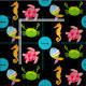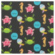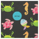 Os miúdos do tecido amarão, caracterizam um fundo preto com as criaturas do mar que incluem uma tartaruga de mar cor-de-rosa, uns peixes listrados, um cavalo marinho alaranjado, e uns círculos que verdes do caranguejo assim como os azuis você pode personalizar com um nome.