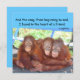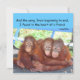 Amigos são a família que escolhemos ter, e este cartão de saudação permite que você escreva uma carta pessoal no verso e que alguém saiba que eles são importantes para você. A artista se voluntariou com resgate orangotango órfão e reabilitação e doou seus lucros para essa causa.