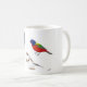 Indígo Bunting, Pintado Bunting e Snow Bunting numa caneca de café.