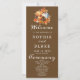 Visite a atração da adoção do outono com este programa cativante de Casamento Marrom-escuro. Sua design moderna e boêmica apresenta os elementos quintessos de Abóboras brancas radiantes e serenas, intrincadas bolotas e uma rica tapeçaria de laranja e folhas verdes vibrantes. No seu núcleo, duas abóboras laranja em greve complementam harmoniosamente uma abóbora branca elegante solteiro, formando uma peça central que captura a essência da estação. Folhas radiantes em variados tons de laranja e verde dançam ao redor, criando um pano de fundo hipnotizante que epitomiza a beleza natural de outono. O reverso do programa apresenta detalhes essenciais do casamento em uma mistura clássica de preto e cinza, empregando uma simples fonte de bloco para clareza e facilidade de leitura. Elevando a essência da ocasião, as palavras-chave Bem-vindo, Cerimônia e Festa de casamento são delicadamente inscritas em uma fonte de escrita maravilhosamente decorativa, infundindo um ar de sofisticação e charme. Este programa de casamentos castanho-escuro encapsula o espírito do outono, misturando seu encantador esquema de cores e design moderno para complementar e acentuar o fascínio dos casamentos temáticos de outono.