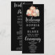 Celebrar a essência do outono com o nosso programa de casamentos negros cativante, lindamente adornado com um design moderno e boêmico que inclui abóboras e folhas. O arranjo que chama a atenção inclui três deliciosas abóboras laranja claras acompanhadas por uma elegante abóbora de xadrez branca e laranja. As folhas, em tons de laranja e verde, complementam graciosamente a design, exuando o encanto da temporada de outono. Criado para os casamentos do outono ou do outono, este programa incorpora o espírito da estação de forma sofisticada, misturando elementos contemporâneos com prazer rústico. A frente mostra uma representação visual impressionante da recompensa do outono contra uma canvas preta elegante, oferecendo uma fusão requintada da estética moderna com um toque de elegância rústica. No verso, os detalhes da festa de casamento são apresentados elegantemente em uma paleta preta e cinza clássica, mostrada predominantemente em uma fonte simples para uma aparência limpa e sofisticada. Notavelmente, as palavras Bem-vindo, Cerimônia e Festa de casamento são enfeitadas em uma letra encantadora e graciosa, acrescentando um toque de encanto e refinamento ao design geral. Embarque a beleza da Queda com este Programa de Casamento Negro, uma mistura artística de modernidade e assentimento sazonal, estabelecendo o palco para uma notável celebração inspirada no outono.