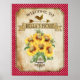 Buquê de girassol no jarro de mason com poster de cheque de gingham vermelho.