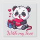 Add a touch of sweetness and fun to your gift with this charming design of a cartoon panda hugging a bright red heart next to a beautiful gift box. The artwork combines cheerful colors and a warm expression, making it a perfect choice for Valentine's Day, anniversaries, or as a thoughtful gift for friends and children.