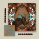 Um design de kaleidoscópio com aparência de couro, com botas ocidentais de couro sujo, com sotaque de turquesa e arranjo de botas no centro.