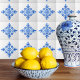 Azulejo de cerâmica da Cozinha Azulejo Azulejo, de Espanha, azul e branco. Aumente a sua decoração doméstica com o nosso azulejo de padrão azul, inspirado pela rica herança cultural de Portugal e pela Espanha e pela beleza eterno dos azulejos! Adicione alguns desses para fazer uma parede de sotaque na sua cozinha, banheiro ou área de jantar! Copyright Flourishing Mare LLC.