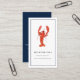 Faça uma impressão excelente com este elegante cartão de visita de cor d'água, na moda, com lagosta vermelha de cor d'água desenhada à mão, com borda azul Marinho sobre fundo branco nítido. Perfeito para restaurante de frutos do mar, gerente de restaurantes, chef, catador. Todo estilo de texto, cores, tamanhos podem ser modificados para ajustado das suas necessidades