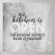 Esta poster de cozinha com texto tem uma citação humorística cozinhando-a você mesma texto em azul-claro e azul-clara texturizado e cinza para decoração de casa de arte em parede. Direitos autorais de Arte Ann Powell todos os direitos reservados.