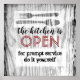 Cozinha poster humorada citação está em uma arte rústica em estilo chic com tipografia Copyright Ann Powell todos os direitos reservados.