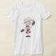 Uma figura fêmea cozinheiro chefe da vara com o chapéu de um cozinheiro chefe, as luvas do forno, e colher de madeira em t-shirt do design do cozinheiro chefe, hoodies, canecas, ímãs, cartões, etiquetas, sacolas, e outros roupa e presentes do cozinheiro chefe.