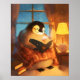 Cozy Penguin Reading Nursery Wall Art Print Poster
