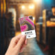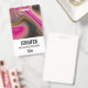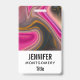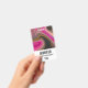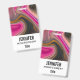 Um nome de etiqueta com um design abstrato e bonito. As cores rosa e preta misturam-se e unem-se num movimento giratório. Espelhos de dourada falsa entre as camadas.
