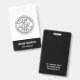 Adicione seu logotipo a este simples crachá preto e branco para criar nomes de etiqueta personalizados para seus funcionários. Personalize com um nome e título e adicione seu endereço comercial ou informações adicionais ao lado inverso em branco a preto.