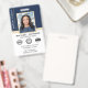 Um crachá de identificação profissional de Notário Público com foto de perfil, logotipo e símbolos de acreditação. Este modelo editável pode ser personalizado com um nome, credenciais e comissão, juntamente com marcas de certificação ou o logotipo da sua empresa para branding. Informações adicionais e um código QR podem ser incluídos no verso. Uma mistura clássica de estilo tradicional e contemporâneo, criando uma aparência elegante e amigável, com texto totalmente personalizável para se adequar à marca da sua empresa. Perfeito para Notário Público, Agente de Assinatura de Empréstimo, Agente de Entrega de Confiança Notarial Certificado (CNTDA), Notário Móvel, Apostila ou outro profissional jurídico. Cores impressas: azul-marinho muito escuro, branco e dourado. Compre a coleção online para mais ideias de produtos populares e suprimentos projetados para notários!