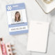 Crachá de fotos do funcionarios médico de cor azul-clara editável com título AIDE SAÚDE DOMÉSTICA editável que você pode mudar para qualquer posição do funcionarios. Inclua um logotipo ou exclua a imagem de exemplo. ALTERAÇÃO DE COR DE FUNDO: O fundo azul claro pode ser alterado clicando na guia PERSONALIZAR MAIS. DICA DA FOTO: Para obter resultados mais rápidos/melhores, escolha uma foto com o assunto no meio e/ou pré-plante para uma forma quadrada ANTES de carregar e ela preencherá o espaço de fotos perfeitamente. Entre em contato com o designer se você quiser que este design seja modificado ou precisar de assistência com um código de cor específico.