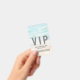This VIP badge features a soft and stylish watercolor beach scene in the background, with calming teal blue ocean tones and warm tan sandy hues for a relaxed coastal feel. The artwork creates a breezy, scenic backdrop that’s perfect for seaside events.