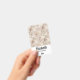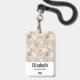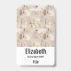 Crachá de nome personalizado com um padrão fofo em estilo nórdico. Árvores de pinheiro de inverno, ursos, renas e esquilos. Cor marrom claro.