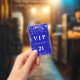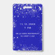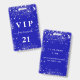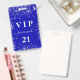 Um crachá moderno, na moda e glamouroso para uma festa de aniversário 21 (ou qualquer idade). Um fundo azul real com pó falso prateado. Personalize e adicione um nome. O nome é escrito com um moderno estilo escrito à mão com traços. O texto: VIP Número 21. Para manter as hastes, exclua apenas o nome da amostra, deixe os espaços ou emoji na frente e depois do nome. Voltar: detalhes da sua festa.