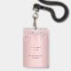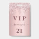 Um crachá moderno, na moda e glamouroso para uma festa de aniversário 21 (ou qualquer idade). Um fundo de gradiente cor-de-rosa pincelado com pingar brilhante falso, aparência de pingar tinta. Com o texto: VIP. Personalize e adicione um nome, idade, detalhes da festa no verso. O nome é escrito com um moderno estilo escrito à mão com traços. Para manter as hastes, exclua apenas o nome da amostra, deixe os espaços ou emoji na frente e depois do nome.