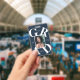 Crachá anúncio de graduação de cores escolares em letra c