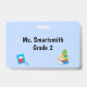 Personalize este crachá temático educacional com qualquer nome e texto. Excelente para professores, assessores, bibliotecários, enfermeiros escolares, etc.
