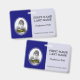 Este design de crachá simples e básico apresenta uma imagem personalizável do retrato de um funcionário ou membro da equipe, juntamente com um nome personalizado e cargo. Crachás como esses podem ser usados por funcionários de uma empresa.