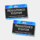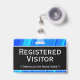Este respeitável design de crachá apresenta a mensagem "Visitante Registrado" e um nome de empresa personalizável ou outra mensagem personalizada. Um crachá como este pode ser usado para indicar que um visitante ou convidado em um local de trabalho tem permissão para estar lá. [~Z0000307]