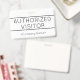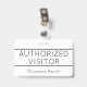 Este humilde design de crachá apresenta a mensagem "VISITANTE AUTORIZADO", e um nome de empresa personalizável ou outra mensagem personalizada. Um crachá como este pode ser usado para indicar que uma pessoa é um convidado conhecido e autorizado em um negócio ou local de trabalho. [~Z0000307]