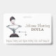 Um bebê bonitinho em um crachá de negócios com dois babás com talento certeiro. Perfeito para feiras e convenções de bebês, ou gravidez e eventos de nascimento.