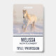 Dê um nome ao crachá com uma fotografia de um lindo cavalo branco. Atravessando um campo coberto de neve. Majestosa e bonita.