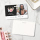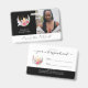Esoteric Boho Moon Crystals Penas Flores com modelo fotográfico de fundo preto. Design boêmico com uma lua crescente, pontos de aglomerado de quartzo-rosa e cristais de cítricos, rosas rosa, verde e penas brancas. Perfeito para o seu negócio metafísico, esotérico, spa, terapeuta, curador de energia, clínico e espiritual. Texto pronto para suas informações. Substitua a foto pela sua. *correspondência de suprimentos de negócios disponíveis