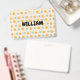 Padrão lúdico e colorido com ilustrações solares sorridentes. Há dois tipos de sóis: um é laranja com bochechas cor-de-rosa e olhos fechados, e o outro é lacado com bochechas cor-de-rosa e olhos fechados. Ambos os tipos de sóis têm uma expressão feliz. O fundo é uma cor bege claro, e o padrão inclui várias formas pequenas como círculos, estrelas, corações e cruzes em tons de laranja, lacre e azul claro. O design geral é alegre e caprichoso, fazer adequado para a decoração das crianças ou para temas divertidos de design.