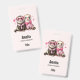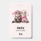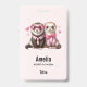Dê um crachá com uma ilustração fofa. Um par de lontras em roupas cor-de-pessoas rosa. Vestir camisas riscadas e vestir uma gravata e a outra vestir uma arco. Envolvido por corações amorosos.