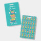 Cute teal library hall pass badge with the illustration of a watercolor bookstack on the front and the pattern of the same bookstack on the back . Personalize it with the teacher's name . Add a lanyard or metal clip if you wish to .