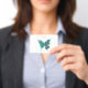 Crachá Borboleta com penas de pavão verde