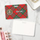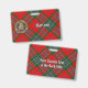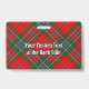 Brasão do Clã MacLean rodeado por uma tira e fivela sobre fundo xadrez. Texto personalizado em ambos os lados.