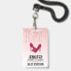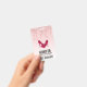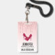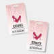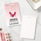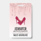 Um design moderno e trendy em uma plaquinha de identificação. O fundo tem uma imagem de brilho rosa cintilante pingando ao longo da parte superior. O restante do fundo é um gradiente de cor rosa pastel delicado. Um par de sapatos de salto alto rosa adiciona um visual elegante e fashion. Uma linha divisória sofisticada separa seu nome e profissão.