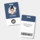 Easily personalize this Custom Brush Stroke Employee Name Badge with Photo, Scan Bar Code and business logo. A creative business design in navy blue and white colors with employee photo into brush stroke shape, fully customizable, in front and back sizes, sans-serif basic and modern fonts and a professional and clear look. Avaiable with lanyard, metal clip or with retractable. No minimum order.