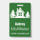 Faça seus funcionários felizes com esses distintivos de estilo minimalista! Árvores modernas verdes e brancas com padrão de cabana em crachá personalizado. Ótimo para conselheiros de acampamento, clubes de atividades ao ar livre ou acompanhantes de excursões ao ar livre.