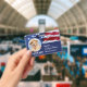 Placa de Identificação de Cão de Serviço Patriótico Bandeira Americana em design vermelho, branco e azul - Identifique facilmente seu cão como um cão de serviço em trabalho, mantendo seu cão focado e reduzindo distrações enquanto trabalha com uma dessas placas de identificação de cão de serviço k9. Embora não seja obrigatório, uma placa de identificação de Cão de Serviço lhe dá a você e seu cão de serviço tranquilidade e facilidade de viagem sem problemas e perguntas ao buscar acesso público. COPYRIGHT © 2020 Judy Burrows, Black Dog Art - Todos os Direitos Reservados. Placa de Identificação com Foto da Bandeira Americana de Cão de Serviço Patriótico