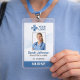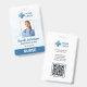 Este crachá de identificação profissional de saúde é projetado para profissionais médicos que valorizam a clareza e o estilo. O proeminente símbolo da cruz médica azul, juntamente com os campos personalizáveis para sua foto, nome e credenciais, torna-o instantaneamente reconhecível. A parte de trás do crachá oferece um layout prático para detalhes de contato essenciais e um código QR para acesso rápido às informações. É um acessório essencial para enfermeiros, médicos e funcionários médicos manterem uma aparência elegante e organizada.