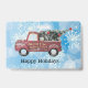 caminhão de vintage vermelho com árvore de natal em um fundo azul com floco de neve Adicione sua própria mensagem 100% personalizável. Clique no botão PERSONALIZAR para adicionar, mover, excluir, redimensionar ou alterar qualquer uma das fontes ou gráficos.