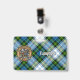 Campbell crest badge rodeado por uma cinta e fivela sobre o fundo Dress tartan. Texto personalizado em ambos os lados.