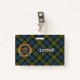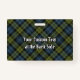 Crachá da crista Campbell rodeado por uma correia e fivela sobre fundo tartano. Texto personalizado de ambos os lados.