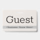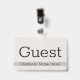 Este moderno design de crachá apresenta a mensagem "Convidado", e um nome de empresa personalizável ou outra mensagem personalizada. Um crachá como este pode ser usado para indicar que um visitante ou convidado em um local de trabalho está autorizado a estar lá. [~Z0000307]