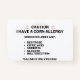 Crachá Cartão de Emergência de Alerta de Alergia Corn