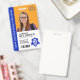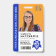 Faculdades, universidades, escolas de ensino médio e instituições de ensino superior podem adicionar sofisticação aos crachás de identificação de estudantes com este design moderno e contemporâneo, que apresenta letras elegantes em fundos azul real, dourado e branco. Personalize com nomes e sobrenomes, nº de identificação do estudante, nome do professor, nome da faculdade/universidade, anos de estudo e logotipo ou slogan acadêmico. As cores e os tipos de fonte podem ser modificados conforme desejado.