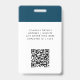 Crachá de ID corporativo simples e na moda, que pode ser facilmente personalizado com a foto, o nome, a posição, o logotipo da empresa, os detalhes comerciais e o código QR ou código de barras do seu funcionário. O na moda colorido apresenta a tipografia minimalista moderna e um banner de blocos coloridos em azul marinho denim para se destacar da multidão. A imagem mostrada é apenas para fins de ilustração para ser substituída pela sua própria foto. A imagem que marca o lugar é de uma jovem tenente com cabelo castanho ondulado e óculos.