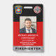 Identifique-se facilmente e seu bombeiro na estação com esses crachás personalizados personalizados de fotografia, logotipo, código de bar, cartão de identificação de bombeiro. Personalize com fotografia de bombeiro, nome, número de identificação e serviço de bombeiros. Personalize a parte traseira com o logotipo e o código de barras da estação de fogo ou qualquer outra informação. Este crachá fino de cartão de bombeiro vermelho é perfeito para todos os bombeiros, bombeiros voluntários, bombeiros, chefe, capitão e tenente. COPYRIGHT © 2020 Judy Burrows, Black Dog Art - Todos Os Direitos Reservados. Crachá da placa de identificação profissional de foto do logotipo personalizado do Bombeiro