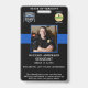 Identifique-se facilmente e ao seu oficial de polícia no departamento de polícia com estes distintivos de identificação personalizados da bandeira da linha azul fina com foto, logotipo, código de barras. Personalize com foto do oficial de polícia, nome, número do distintivo, detalhes e departamento de polícia. Personalize com o logotipo da sua delegacia, selo do estado e código de barras. Este crachá de identificação policial da linha azul fina é perfeito para todos os oficiais de polícia, aplicação da lei, sargento, chefe, capitão e tenente. COPYRIGHT © 2020 Judy Burrows, Black Dog Art - Todos os Direitos Reservados. Profissional Foto Aplicação da Lei Polícia Cartão de Identificação Crachá