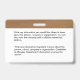 Preencha esta opção Personalize o Cartão de Identificação para sua empresa, empresa ou corporação a ser entregue aos funcionários. Substitua as informações pela sua e escreva a sua filosofia na parte de trás do crachá. Cada funcionário deve ter um para se identificar com seus clientes, clientes e outros. Excelente para voluntários também.